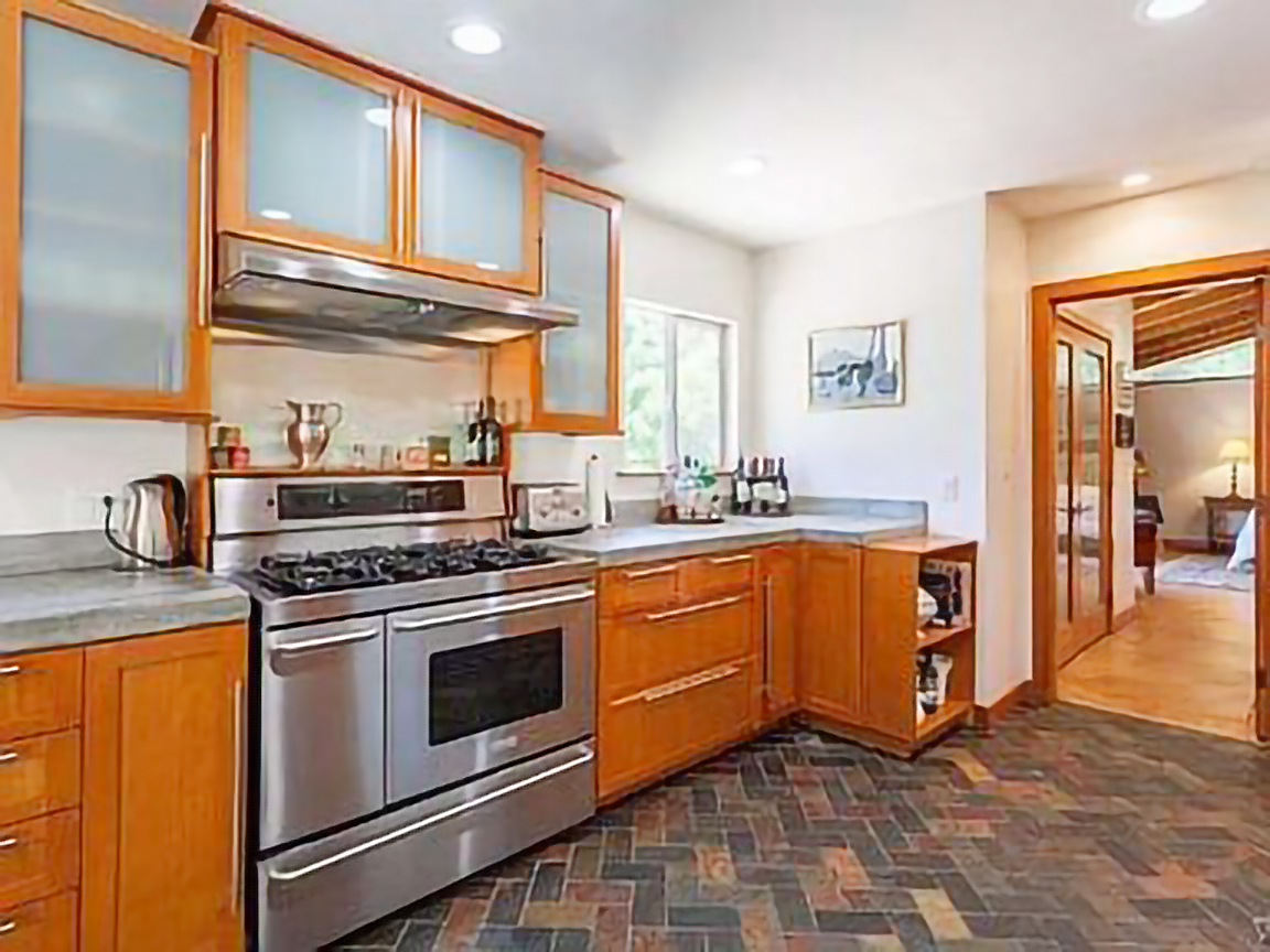 This 1950s California ranch house on an acre had good bones but delayed maintenance. Installation of storage, revamping the bathrooms, updating of paint colors, lighting, and furniture. The landscaping was enhanced by hedges, trees, grass and flowering plants turning the property into a true escape from the city.